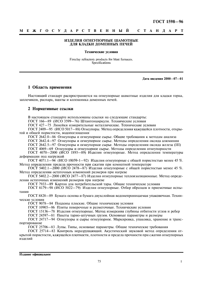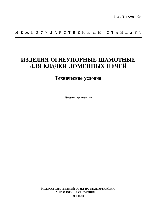 / ГОСТ 201598-96 Изделия огнеупорные шамотные для кладки доменных печей